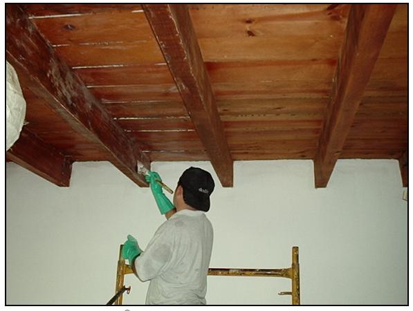 Bien mediante pulverización o bien mediante aplicación con brocha, el producto es aplicado sobre la superficies de madera a tratar. La cubrición de toda la superficie es necesaria si se desea un rendimiento óptimo del tratamiento para eliminar carcoma Valencia. El grado de penetración de estos productos en la madera es muy superior al conseguido con otros productos de naturaleza oleosa, cuya profundidad máxima de penetrado en la madera no suele superar los 5 mm.